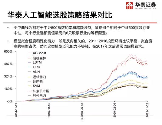 最后,她分享了华泰人工智能选股策略的构建方式、结果对比和难点思考。上个结果对比图感受一下: